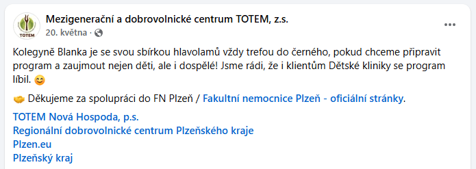 Jednou měsíčně docházím jako dobrovolník na dětské oddělení ve Fakultní nemocnici Plzeň Lochotín.