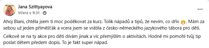 A nejlepší čas je čas, který strávíte spolu. Pokud to bude u mého kurzu, budu ráda a určitě vám přidám nějaké zajímavé úkoly navíc.